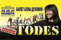 Юбилейные концерты балета Аллы Духовой 'Тодес' посвящены 25-летию прославленного коллектива. Грандиозные по масштабу и новизне шоу пройдут на одной из самых больших сцен страны - в Театре Российской Армии.